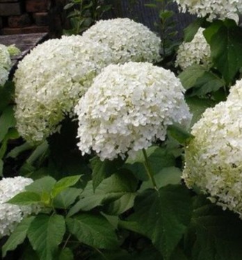 Саженец гортензии древовидной Bounty (Баунти) отличается крупными яйцевидными листьями светло-зеленого оттенка, которые с нижней стороны имеют сизоватый оттенок. Этот сорт радует продолжительным цветением, которое длится все лето и до сентября при условии регулярного полива. Белоснежные цветки собраны в крупные соцветия диаметром 20-30 см. Куст формирует прочные цветоносы, что предотвращает поникание соцветий после дождя и полива. Высота куста достигает 1 метра, а ширина – до 1,5 метров.