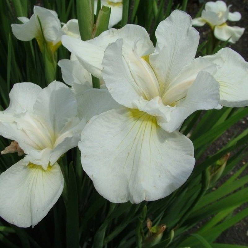 Ирис сибирский Сноу Квин (Snow Queen) - это превосходный выбор для тех, кто хочет украсить свою клумбу красивым и неприхотливым растением. Белоснежные цветы этого сорта создают эффект "облаков", которые прекрасно дополняют яркие растения в групповых посадках. Этот ирис также великолепно смотрится в одиночных посадках, например, на берегу декоративного водоема.