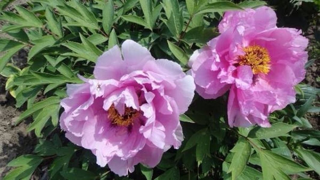 Пион древовидный "As pretty as flower and jade" станет изысканным украшением вашего сада благодаря своему романтичному цветению. Его нежные махровые лепестки, окрашенные в розовый перламутр, образуют пышные и плотные цветки, напоминающие хризантемы. Светло-розовые лепестки постепенно переходят в почти фиолетовый оттенок по мере приближения к яркой желтой сердцевине. Цветки этого сорта достигают внушительных размеров, до 30 см в диаметре, и особенно эффектно смотрятся на фоне насыщенной зелени листвы.